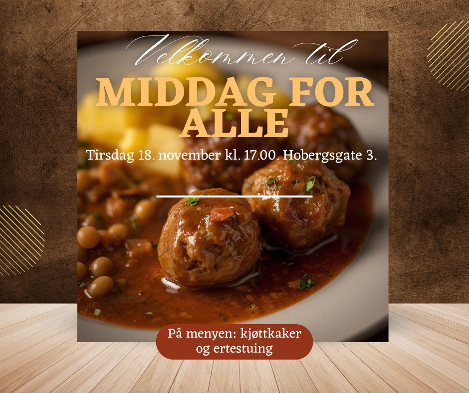 Velkommen til årets siste middag for alle! På menyen står kjøttkaker i brun saus, med ertestuing til. Dessert blir det også :)