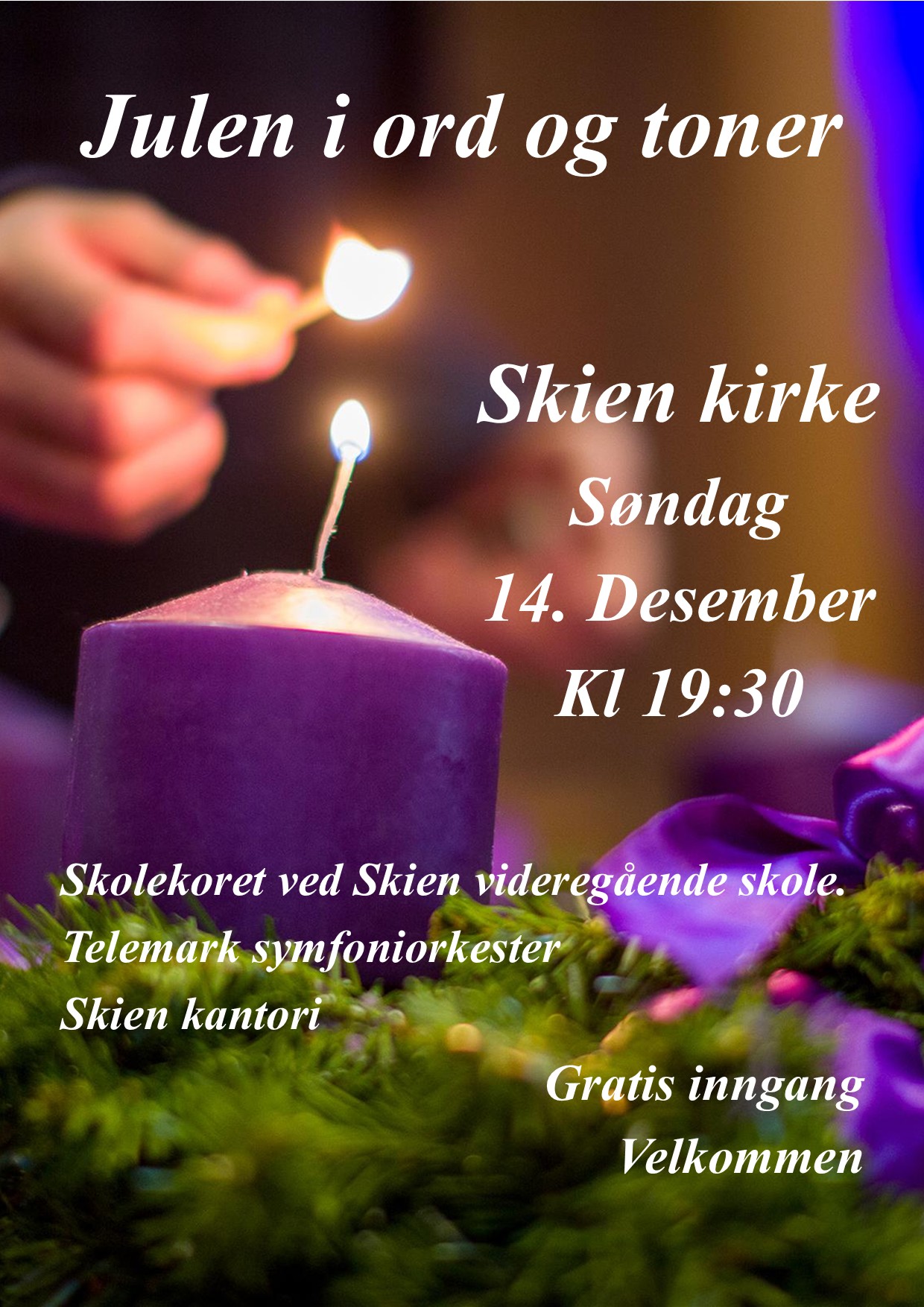 14.12 kl. 19.30: "Julen i ord og toner". Skien kantori, Skien videregående skole og Telemark symfoniorkester. Fri entré/kollekt